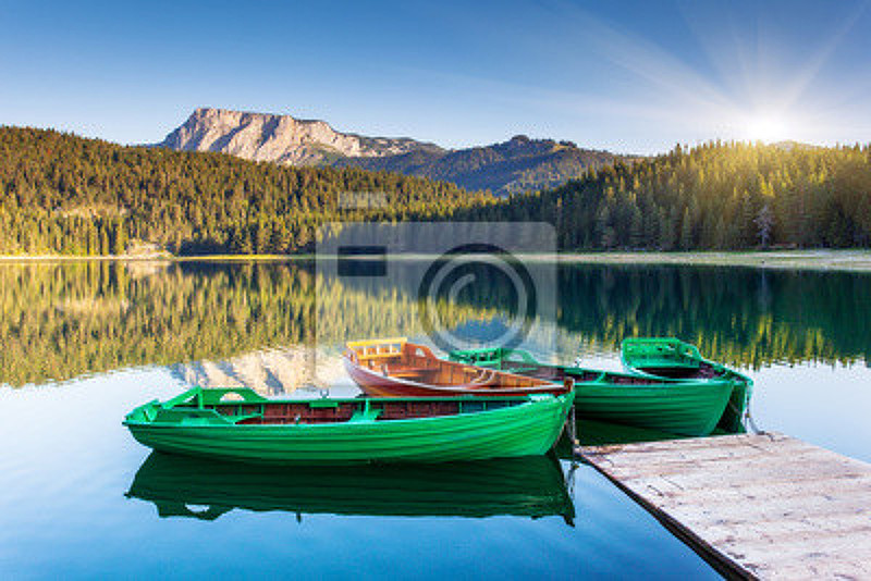 Фотообои с лодками на озере. Артикул 10000093.
