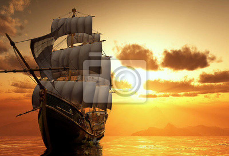 Фотообои с кораблем на закате артикул 10001550