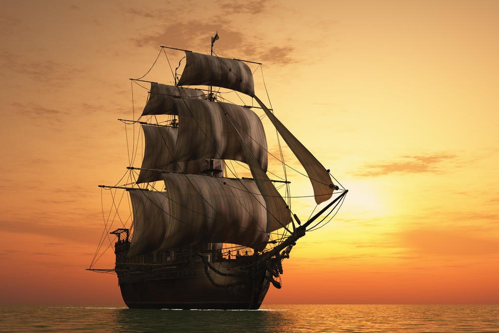 Фотообои на стену с парусником на закате. Артикул 10001551.