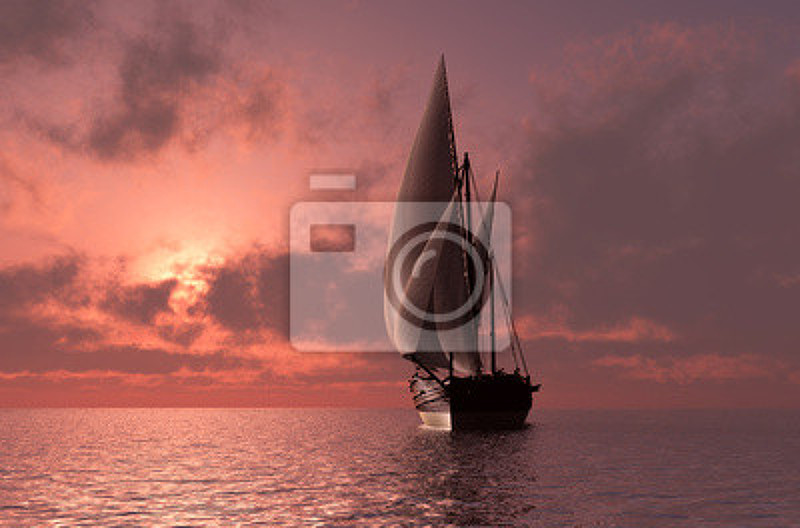 Фотообои на стену с яхтой на закате. Артикул 10001552.