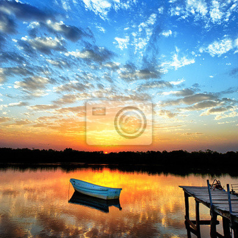 Фотообои на стену с лодочкой на закате. Артикул 10001837.