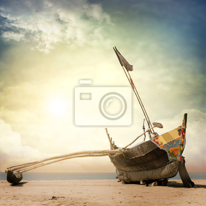 Фотообои - Винтажная лодка в тропиках. Артикул 10004070.