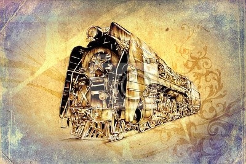Фотообои - Рисунок старого паровоза артикул 10003344