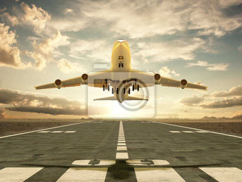 Фотообои "Самолет над взлетной полосой". Артикул 10002447.