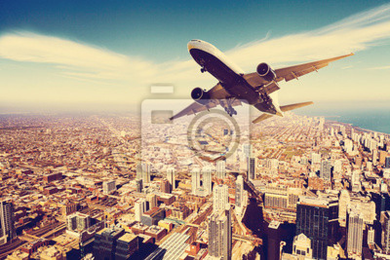 Фотообои - Самолет над мегаполисом. Артикул 10006182.