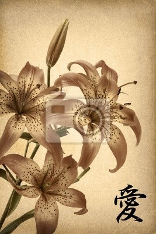Обои с лилией в стиле ретро. Артикул 10006263.