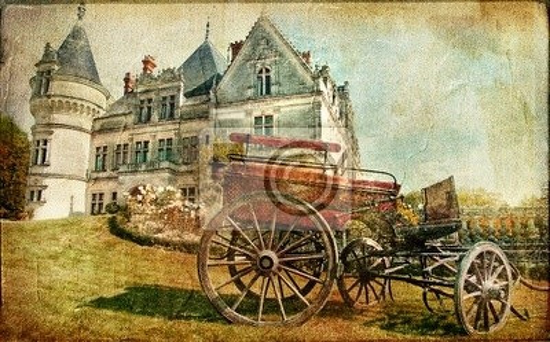 Фотообои с каретой на фоне замка. Артикул 10001427.