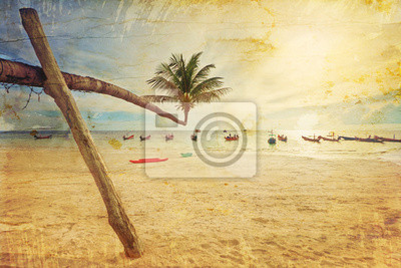 Фотообои с тропическим пляжем в стиле ретро артикул 10001040