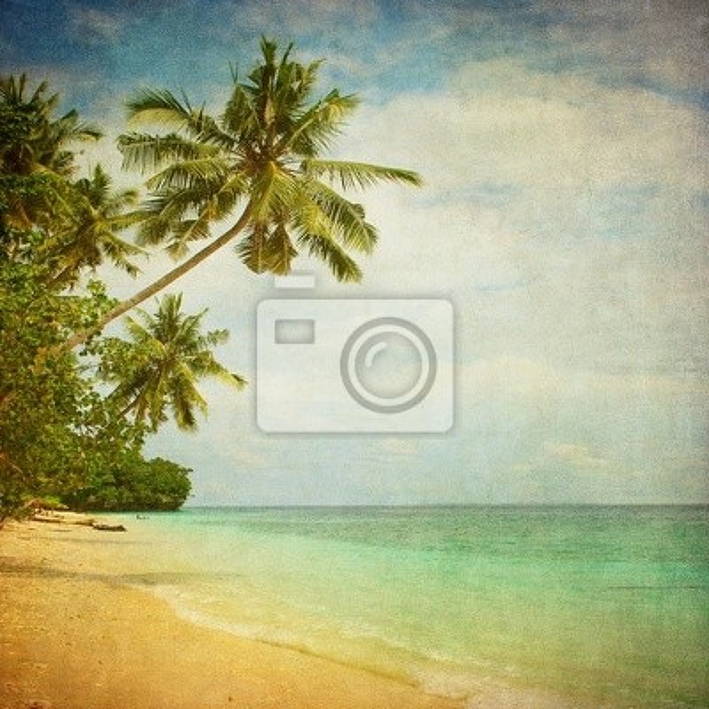 Фотообои в ретро стиле с тропическим пляжем. Артикул 10001634.