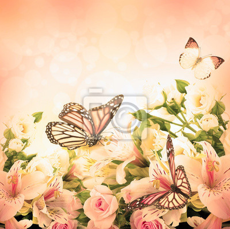 Фотообои с цветами и бабочками. Артикул 10001431.
