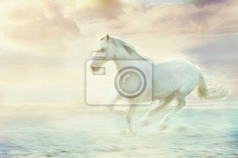 Фотообои на стену с белой лошадью в тумане. Артикул 10001831.