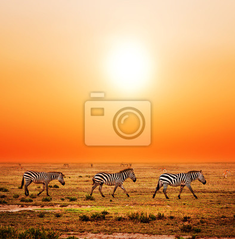 Фотообои - Зебры в саванне. Артикул 10006486.