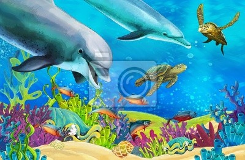 Фотообои - Черепахи и дельфины. Артикул 10003796.