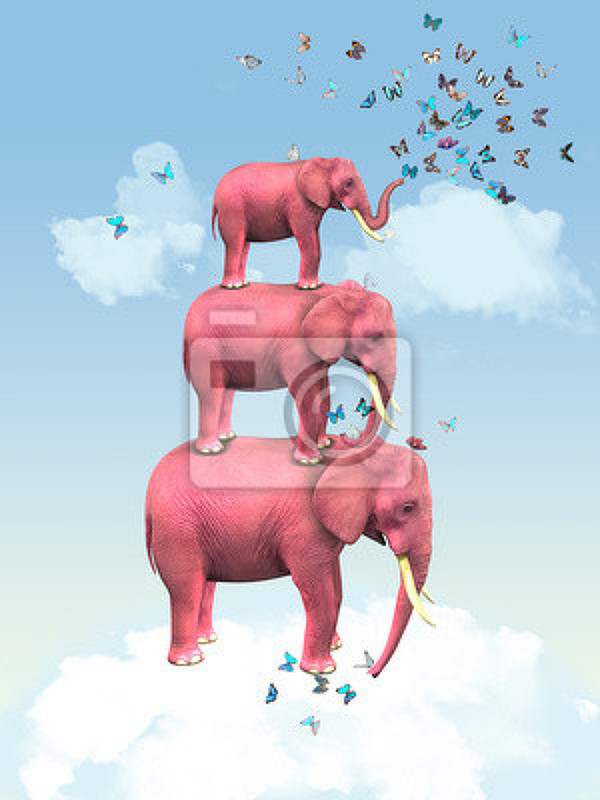 Фотообои с розовыми слонами (креативный сюжет). Артикул 10001669.