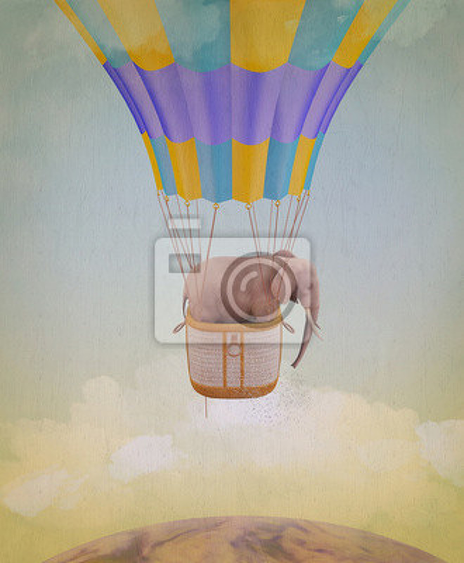 Фотообои - Слон на воздушном шаре артикул 10002588