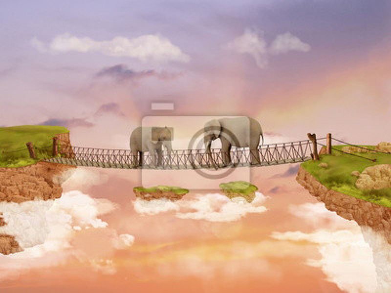 Фотообои - Слоны на мостике. Артикул 10005170.