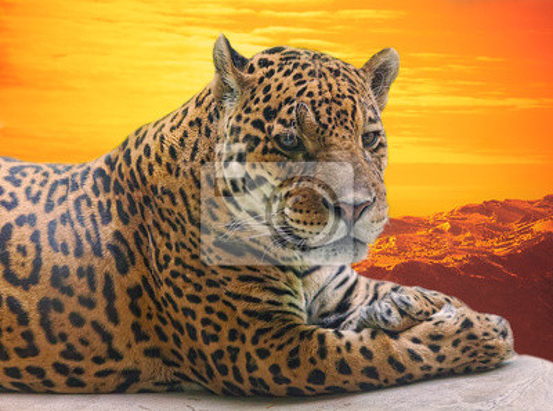 Фотообои - Леопард на закате солнца. Артикул 10000067.