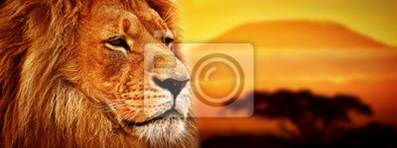 Фотообои - Лев в саванне на закате. Артикул 10007957.