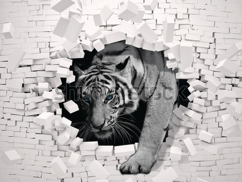 3Д обои на стену с тигром (ч/б). Артикул 10060755.